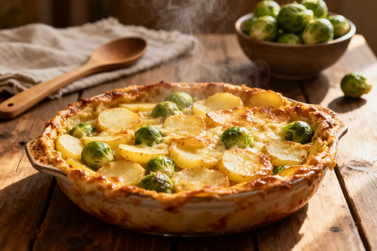 Chaque dimanche, un simple parfum de légumes rôtis suffit parfois à réunir tout le monde autour de la table. Ce gratin patates–choux de Bruxelles crée exactement cet effet. Il surprend, rassure et réchauffe, même ceux qui pensent ne pas aimer les choux. Vous allez voir, ce plat n’a rien de compliqué, mais il a ce petit quelque chose qui change tout.