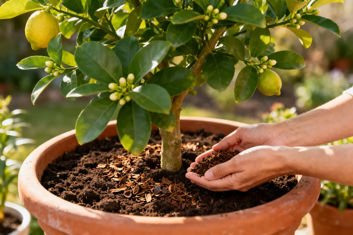 Les agrumes aiment une terre légèrement acide. Le marc aide à acidifier juste ce qu’il faut. Le résultat est visible : des feuilles plus saines et une meilleure floraison.