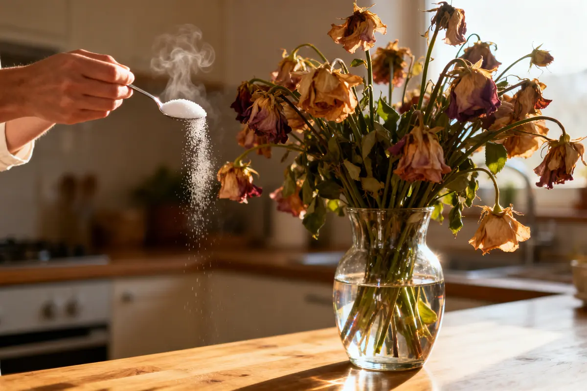 La prochaine fois que vous verrez un bouquet décliner, vous saurez qu’il n’est pas forcément perdu. Il suffit parfois d’un ingrédient que vous utilisez chaque jour en cuisine pour lui redonner vie.