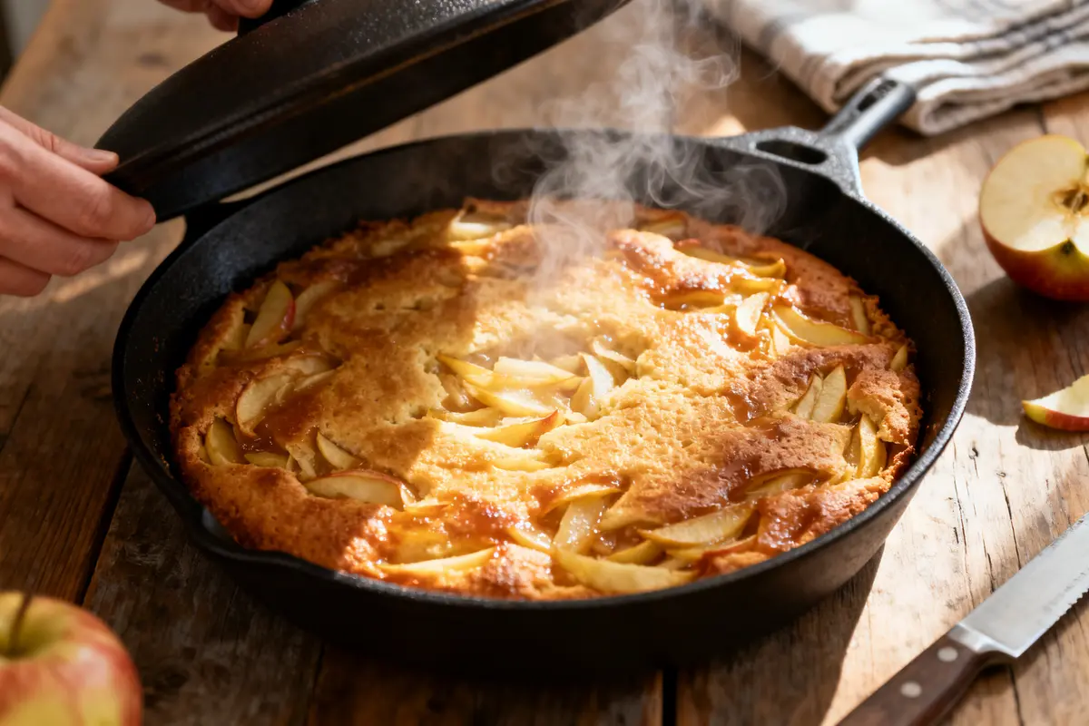 Chaque ingrédient renforce la texture. La pomme apporte du moelleux. Le lait en poudre ou le yaourt soutient la structure. L’huile garde le gâteau souple même froid. La cuisson lente et couverte imite l’environnement d’un four. C’est ce qui rend cette recette fiable et accessible.